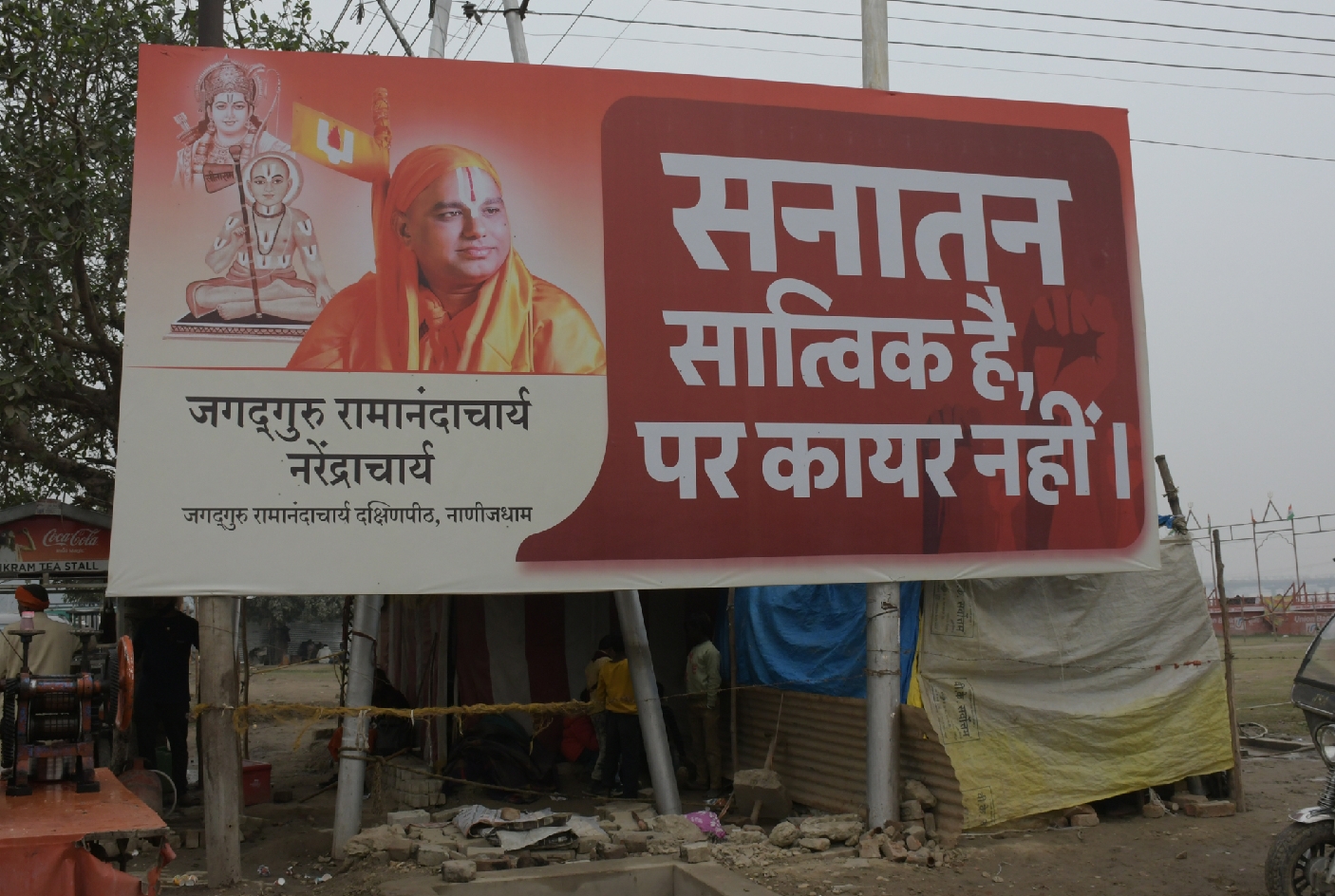 इसमें प्रमुख है जगद्गुरु रामानंदाचार्य नरेंद्राचार्य की। इस होर्डिंग में लिखा है- ‘