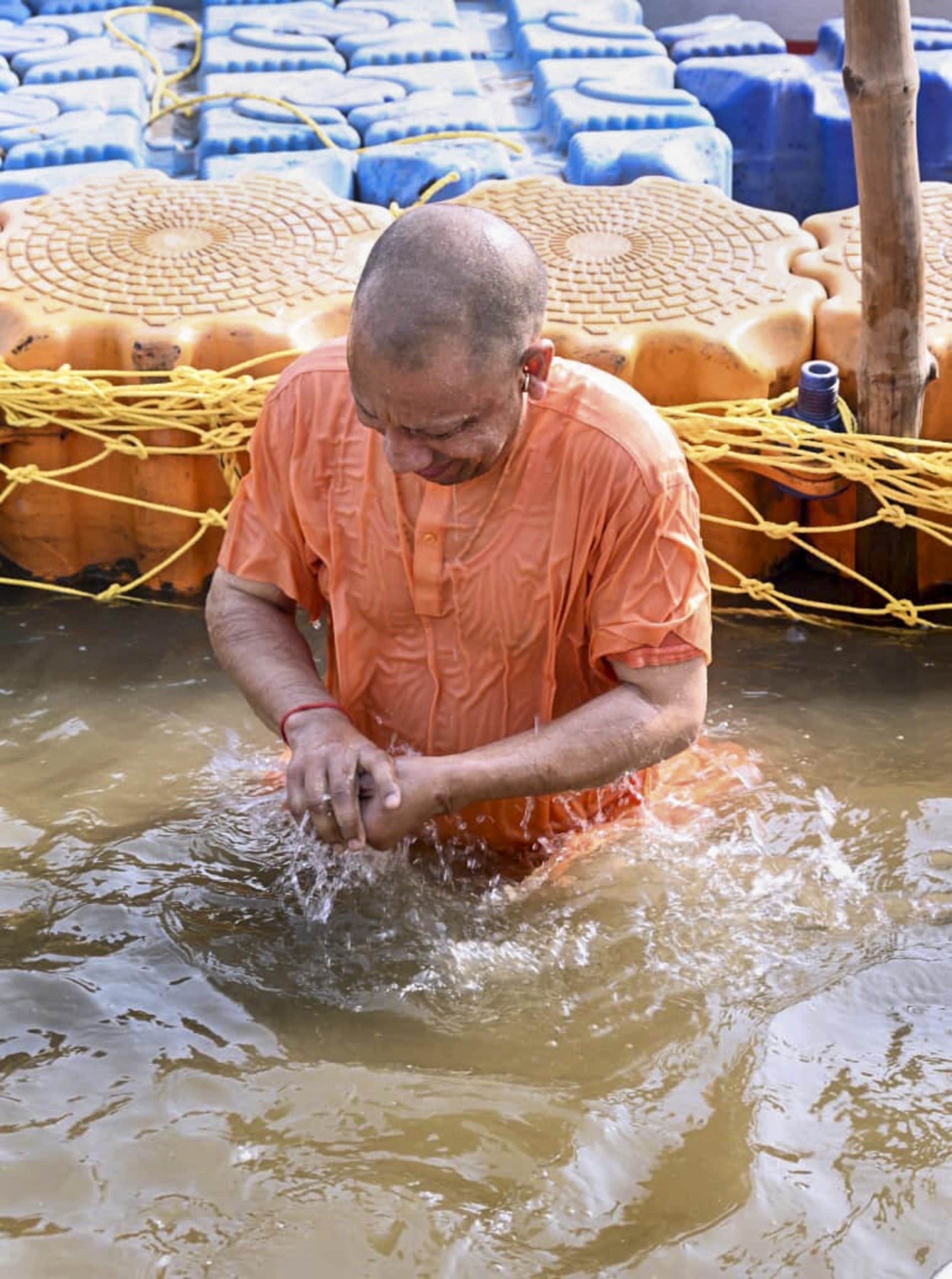 सीएम योगी ने जब आस्था की डुबकी लगाई तो कुछ इस तरह नजर आए.