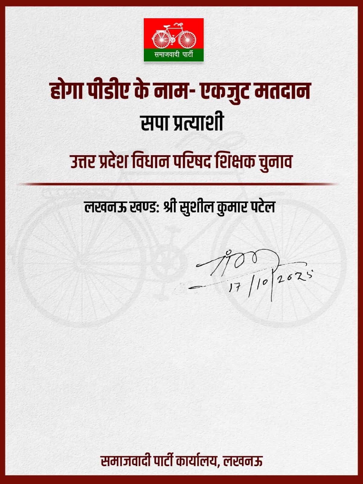 शिक्षक खंड MLC चुनाव के लिए समाजवादी पार्टी ने सुशील कुमार पटेल को किया प्रत्याशी घोषित